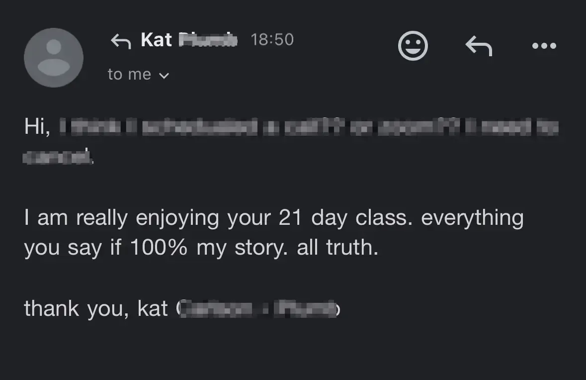 Plus, when you feel stuck and want to speak with me 1:1 via Zoom, you get a private trauma bond freedom call — FREE.